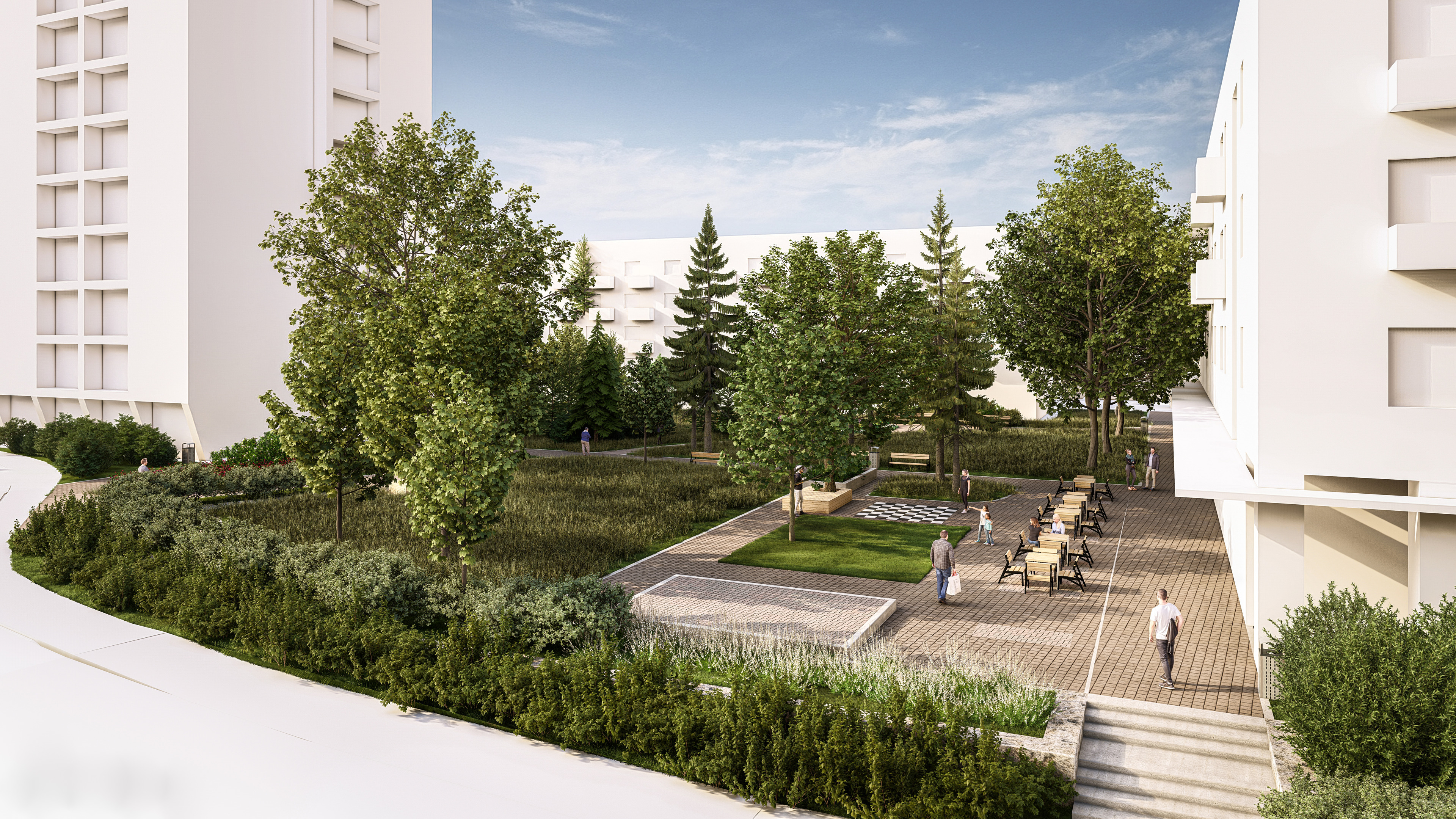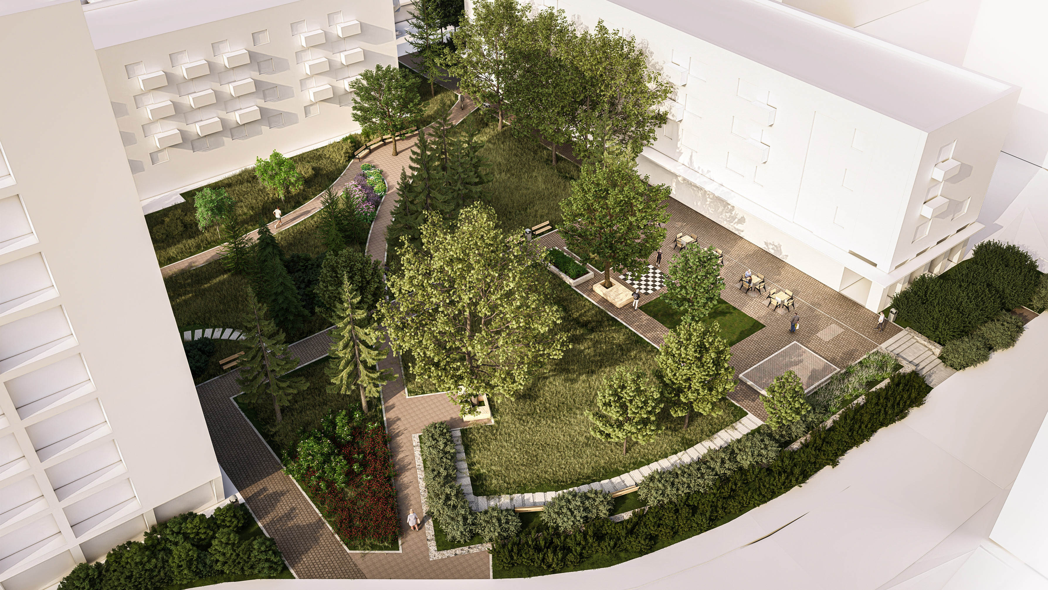 A jellegzetes hatvanas évekbeli arculatot viselő, az itt élők által rendkívül kedvelt kiliáni lakótelep északi oldalának „főutcája” a Szinyei Merse Pál utca, ezért is kiemelt központnak számít az e mentén elterülő kisebb parkocska. A környékbeli civil törekvésekre is reagáló fejlesztés közösségi tér kialakítására tesz kísérletet a tervezett zöldfelület-fejlesztéssel, gyalogos járófelületek kialakításával, utcabútorok kihelyezésével.