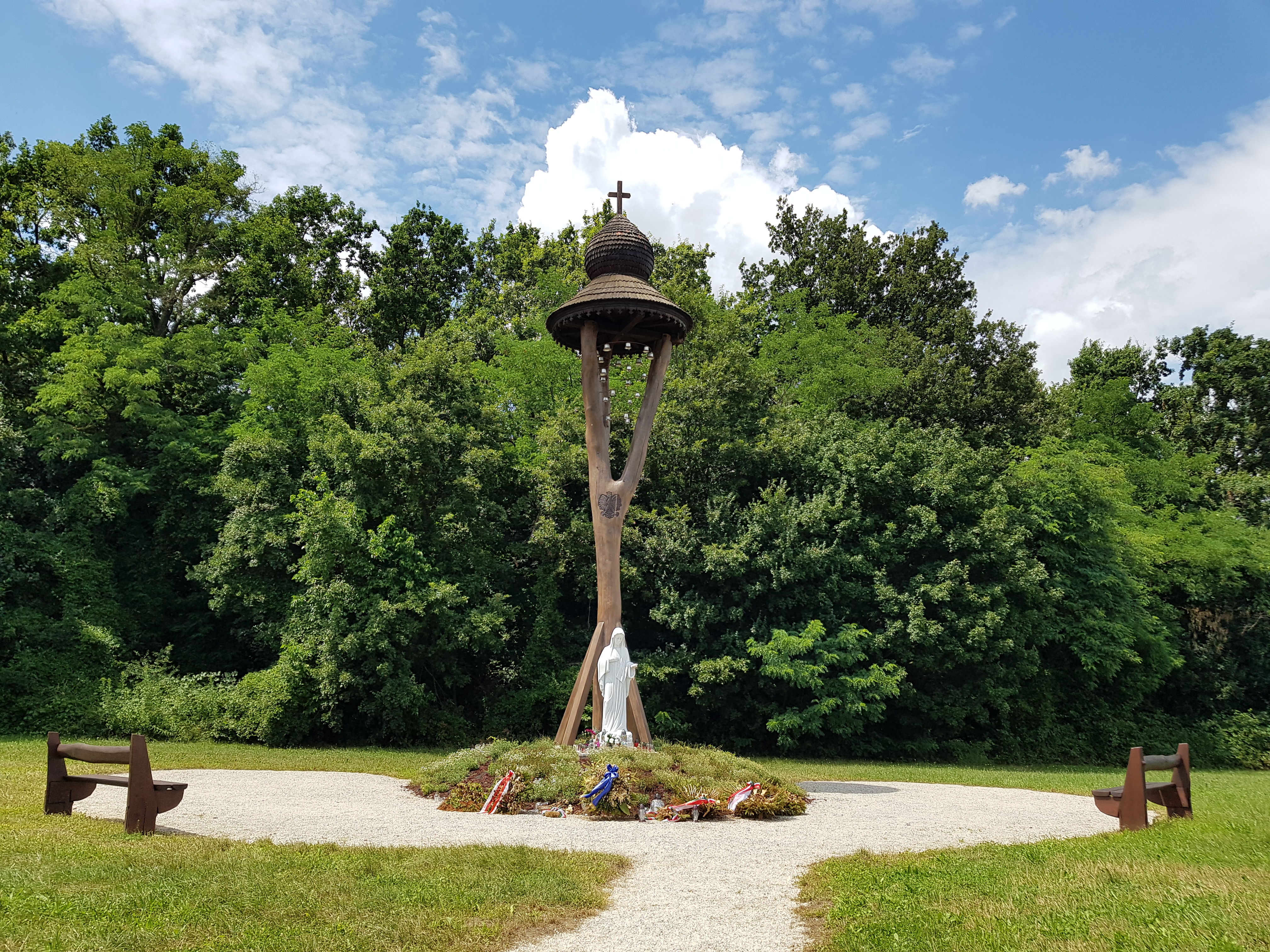 Balatoni utazásunk során megálltunk a Balatonszentgyörgynél a lengyel zarándokokat szállító autóbusz-baleset keresztjénél és medjugorjei Szűzanya szobránál, melyet az elhunytak emlékére állítottak. A Medjugorjéba tartó busz tizenhét évvel ezelőtt borult fel Balatonszentgyörgy és Balatonkeresztúr között.