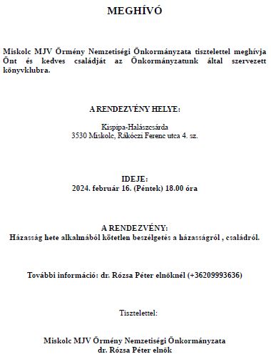 Meghívó - A házasság hete alkalmából megszervezésre kerülő rendezvényre - 2024.02.16.