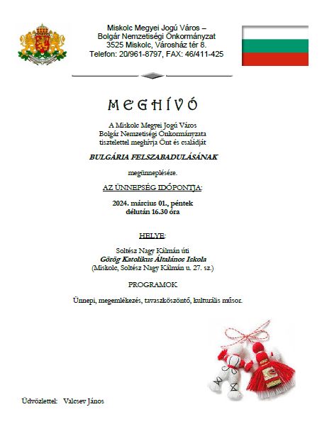 Meghívó - Bulgária felszabadulásának megünneplésére - 2024.03.01