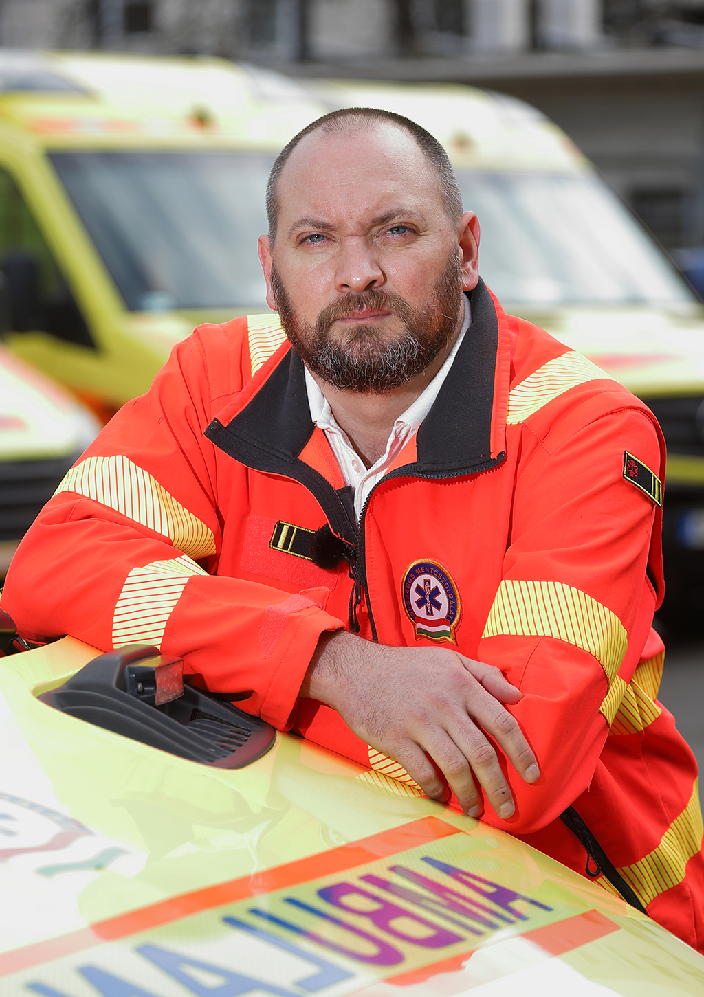 A mindössze 36 éves mentőápoló, 3 gyermekes családapa, aki szakközépiskolás korában még önkéntesként kezdte a Magyar Vöröskereszt megyei alapszervezeténél, ahol ma elsősegélynyújtó oktató. 2011-ben Az év önkéntesének választották. Ebben az évben már tizenhatodik esztendeje erősíti az Országos Mentőszolgálatot szaktudásával. – Édesanyám kórházban dolgozik jelen pillanatban is és gyermekkoromban ez magával ragadott. Aztán édesapám súlyos beteg lett. A Honvéd Kórházban kezelték és mentővel járt a kezelésekre. Amikor meghalt, onnantól kezdve a mentőzés volt nálam a fő csapásirány. Anyukám nem igazán akarta, hogy egészségügyben dolgozzak, de ma nagyon büszke rám. Számomra nagy öröm lenne, ha a kisfiam ugyanezt a hivatást választaná. Remélem, hogy mire ő odajut, a társadalom nagyobb megbecsüléssel fog hozzáállni az egyenruhás szervekhez – osztotta meg Domoszlai Tamás. A mentőápolót egy átlagos munkanapjáról kérdeztük, ami egyáltalán nem mindennapi.– Amikor beérek, felveszem az egyenruhát és jó esetben van időm meginni egy kávét, átnézni a felszerelést és az autót. Rosszabb esetben azonnal megszólal a csengő, és egy perc alatt el kell hagynunk a mentőállomást, mert vannak olyan betegek és állapotok, amelyek nem tűrnek halasztást. Átlagosan 13-14 helyre megyünk ki 24 óra alatt, amiből éjszakára néha 4-6 is jut. Eddig 20 kivonulás volt a rekord. A lelki része picit nehezebb a munkámnak, mint a fizikai. Mindenki, aki segítséget kér, megpróbálja abba a kis időbe belesűríteni a kéréseit, amíg ott vagyunk. Nekünk el kell fogadnunk, hogy szolgáltatunk, az életmentést kínáljuk és a beteg igényeihez igazodunk, ezért az alázat nagyon fontos – hangsúlyozta az ápoló. Elsősegélyt oktat. Megmaradó szabadidejében szívesen kerékpározik, DVTK meccsekre jár, családjával kirándul és a Vöröskeresztnél szolgál a szociálisan érzékeny életmentő. – A főállásom mellett megmaradt az elsősegélynyújtó feladatom is a Magyar Vöröskeresztnél. Ez szorosan kapcsolódik a mentőápoló hivatásomhoz. 2011-ben Összefogás az életért címmel prevenciós előadássorozatot tartottam iskolákban egy kollégámmal és ezzel érdemeltem ki Az év önkéntese díjat. Öt éve a Miskolci Rendészeti Szakgimnázium által szervezett Életmentő és Elsősegélynyújtó versenyen vagyok zsűrielnök. Ezenkívül a Bükk Mentőcsoportban is a humanitárius szervezet színeit képviselem. – sorolta. 2019-ben négy kategóriában – egészségügyi dolgozó, önkéntes, pedagógus és egyéb kategória – kerestek immár második alkalommal hétköznapi hősöket: azokat az embereket, csoportokat és szervezeteket megyénkben, akik csendben, a színfalak mögött végzik munkájukat másokért. Mentőápolói kategóriában Domoszlai Tamást díjazták. A járványhelyzetben, az ukrajnai háború kapcsán és a Dunai árvíznél kiemelkedő szolgálatot teljesített, amelyeken Miskolc város hírnevét is öregbítette, ezért javaslom Benkő Sámuel egészségügyi díjra.