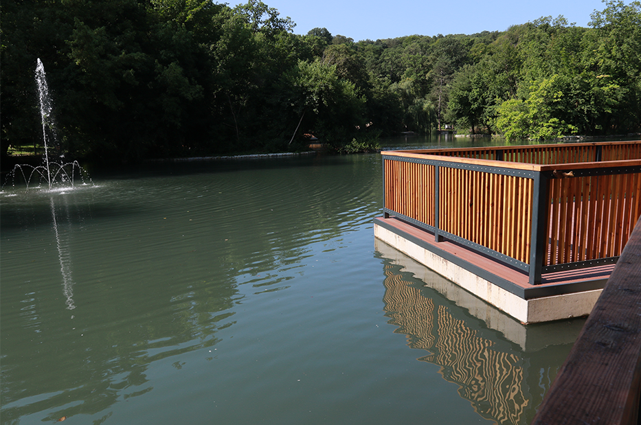 Hosszú idő után eltávolították a Csónakázó-tó medrében évek során felgyülemlett iszapot és megerősítették a tó partfalát. A tó köré is telepítettek új utcabútorokat és kandelábereket, emellett a tó mentén WPC burkolatú napozóteraszokat és konzolos stégeket alakítottak ki. A felújított Kilátó tér nemcsak a szökőkút és tó felé nyújt kilátást, hanem padjaival és ivókútjaival a pihenést és a felfrissült szolgálja. A tó körbejárhatóságát biztosító két híd is megújult, és visszakerültek a helyiek által kedvelt mókus-installációk.