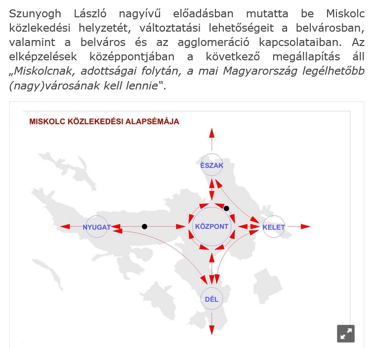 A többi közlekedési tengelyei a városunknak alapvetően 4 + 1 fő csomópont között húzódnak. A feladatot korábban a kelet-nyugati tengely, az észak-déli tengely (a belvároson át), úgymond, letudta. Ma már megköveteli a helyzet, hogy a további végpontok között is legyen összeköttetés. A dél oldalon Diósgyőr és a pesti út között többé-kevésbé megoldott: a Csermőkei út vonalán. De az északi oldalon (Diósgyőrből eljutni gyorsan a 26-os út felé), mos, ez abszolút hiányzik, megoldatlan, sőt, megoldhatatlannak tűnik... Egy régi álom, látható realitás nélkül.