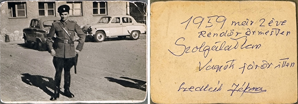 Mikortól voltam rendőr? 1974-től 2004-ig. Harminc évet szolgáltam. A megyei főkapitányságra kerültem 21 éves koromban. Azelőtt alakult meg a megyén a közlekedési osztály. Két alolsztályból állt, forgalomellenőrző és helyszínelő. Én az előbbihez kerültem, közlekedési járőrként, mint szakaszvezető. Innen vezényelték a rendőröket a Villanyrendőrhöz. Mikor voltam itt először? 74-75, pontosan nem tudom. Jópárszor, 15-20 alkalommal biztos voltam. Körülbelül harminc fős volt a forgalomellenőrzési alosztály. A váltásparancsnokok, Szikszai Zoltán, Együd József, ők egy vezényléses rendszerben küldték az embereket, többek között ide a Villanyrendőrhöz. Egyszerre kettő főt küldtek; ide egyedül nem jött rendőr. Akkor jártunk egyedül, mikor már csak be kellett kapcsolni; ez később volt, amikor már automatizálták. Még itt volt később is a torony – mi így hívtuk –, de már nem kellett felmenni, csak fel kellett reggel 5 órakor kapcsolni a lámpát, ls este 21 órakor kikapcsolni; illetve akkor kapcsoltuk ki, amikor már nem volt forgalom. A szolgálat 5-13, és 13-21-ben ment. Ő/1-es útvonal volt, és egy állandó poszt, ahol itt kellett állandóan tartózkodni. Nyilvánvalóan az embernek szükségletei vannak – ha valamelyik rendőrnek ki kellett menni, akkor másik ment fel, vagy pedig ha éppen nem volt akkora forgalom, vagy épp nem volt a kollégája a közelben, akkor kikapcsolta sárga villogóra. Tulajdonképpen a feladat az volt, hogy a forgalomnak megfelelően, nyomógombokkal irányítottuk. Érdekes volt vagy unalmas? Inkább érdekes, mert rengeteg ember jött itt. Ugye, reggel mentek dolgozni, 6-kor kezdett a gyár, nagy forgalom volt, rengeteg ember, a Forinton napközben nagyon sokan jártak, itt ment a villamos, itt ment a busz még abban az időben. Hatalmas forgalom bonyolódott le. Nekem, pláne mint kezdő rendőrnek, érdekes volt. Érdekesebb, mint simán sétálni az utcán. Szép fehér ruhánk volt; a szürke ruhához fehér derékszíj, ha a fehéret vettük fel, akkor a fekete szíj. Mutatósan. Sőt, emlékszem, mikor én felszereltem, még csizmát hordtunk. Erről mondták az ismert rendőrviccet, a két pár csizmáról... A lényeg az, hogy tehát ketten voltunk, a másik bent volt, a fütyülővel rendet tartott, aki nem úgy ment, azt szépen lefütyülte. Amelyik megérdemelte, azt meg is büntette. Abban az időben a csekkfüzetben 10 forintos csekkek voltak. Akit megbüntettünk, 10-20, maximum 50 forintra, de ahhoz már nagyon nagy szabálysértést kellett elkövetni az illetőnek, aki nem a közlekedési lámpának megfelelően ment. A villamosról meg azt szeretném elmondani, hogy előfordult, mikor a lámpa már nem bírta el a forgalmat... Valamelyik irányból feltorlódott. Ekkor be kellett állni kézi irányításra. Beálltunk oda középre [a két sín közé], és ki volt adva az MKV-soknak, hogy nem indulhatott el egyszerre mind a két irányból a szerelvény! Mert akkor a rendőrt nem lehetett volna látni, meg a rendőrnek is kellemetlen, ne kelljen behúznia... Még annyit, mondják a gumibotot, gumibotos rendőrt: a közlekedési rendőrségnél akik forgalomirányítást kézzel végeztek, esztergáltattak maguknak egy fabotot. Azért, mert a gumibottal nehéz volt integetni! Akkoriban csinálták a Gömöri felüljárót, emlékszem arra, hogy beálltam a Bajcsy-Zsilinszky – Kun Béla utca kereszteződésbe reggel 6 órakor, és egész délig ott álltam... Mert a járőrtársamnak valami dolga volt.